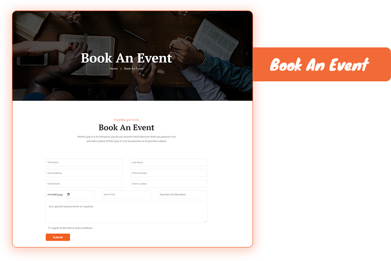 Managing church events has never been easier. Deeds2 offers flexible event layouts and scheduling tools so you can promote services, community gatherings, conferences, and workshops directly on your site. Highlight volunteer opportunities, allow members to register or book seats online, and share event details with images, videos, and speaker bios. This all-in-one system saves you time and keeps your congregation connected and informed about upcoming activities, strengthening your community outreach every week.